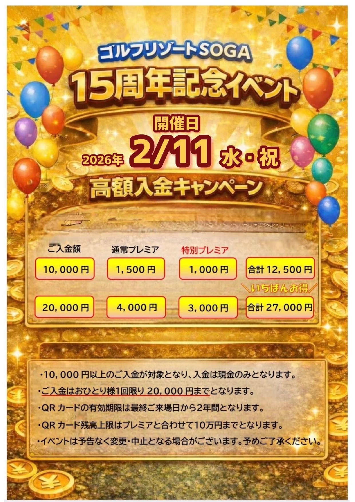 2月メンテナンス休業・高額入金キャンペーンのお知らせ